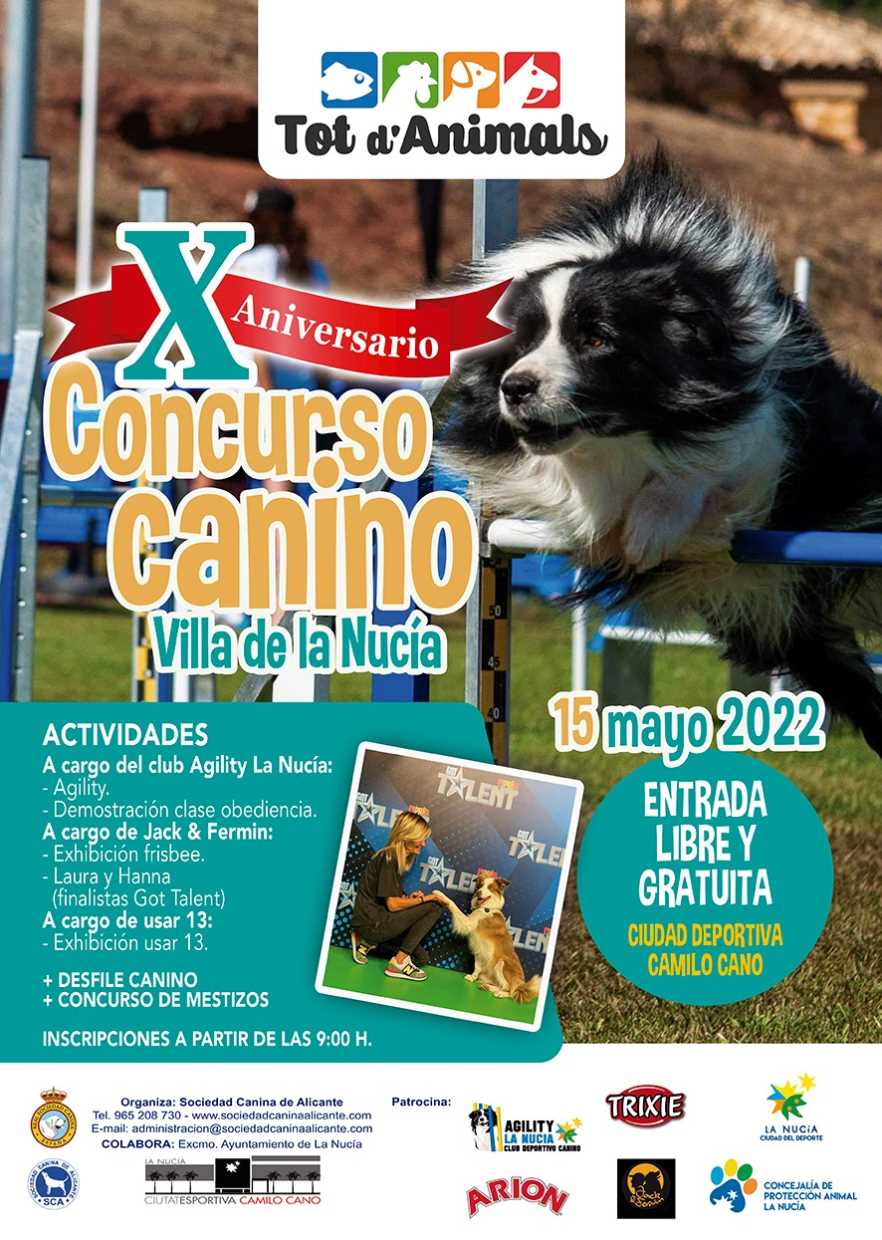 Este domingo 15 de mayo de 9 a 14 horas se celebrará en la Ciutat Esportiva Camilo Cano el X Concurso Nacional Canino “Villa de La Nucía”. Este concurso de perros está organizado por la Sociedad Canina de Alicante con la colaboración de Tot D’Animals y Ayuntamiento de La Nucía.