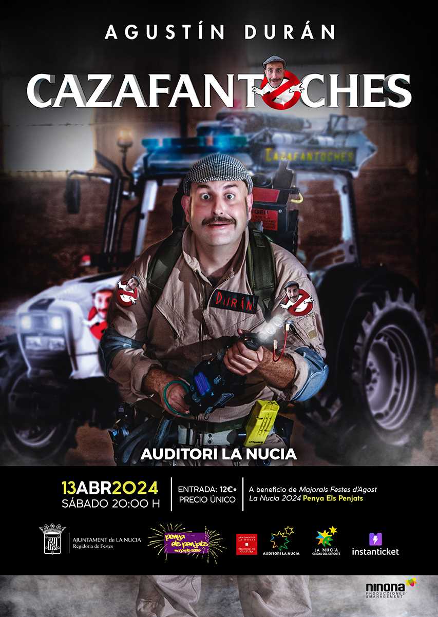 Las entradas para ver “Cazafantoches” de Agustín Durán el sábado 13 de abril, ya están a la venta al precio único de 12 euros en las taquillas de l’Auditori de La Nucía y en https://instanticket.es/cazafantoches-agustin-duran/?id=CAZAF24