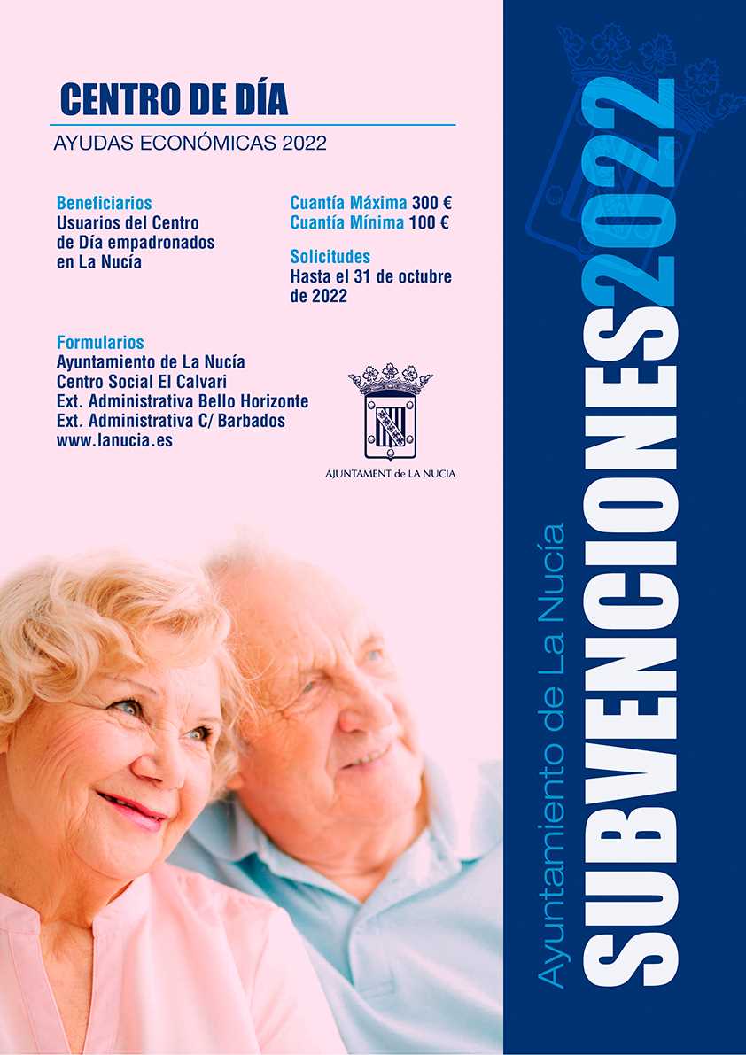 “En 2022 continua la subvención a los usuarios del Centro de Día, por séptimo año consecutivo. El objetivo de esta ayuda económica, que llega hasta los 300 euros mensuales, es posibilitar a todo el mundo el acceso al Centro de Día, especialmente a las personas con menos recursos. Se trata de ayudar a nuestros mayores dependientes para que tengan la mayor calidad de posible y la mejor asistencia y cuidado. A todas las personas interesadas en la subvención les recomendamos que vengan al Centro de Día” comentó Bernabé Cano, alcalde de La Nucía.