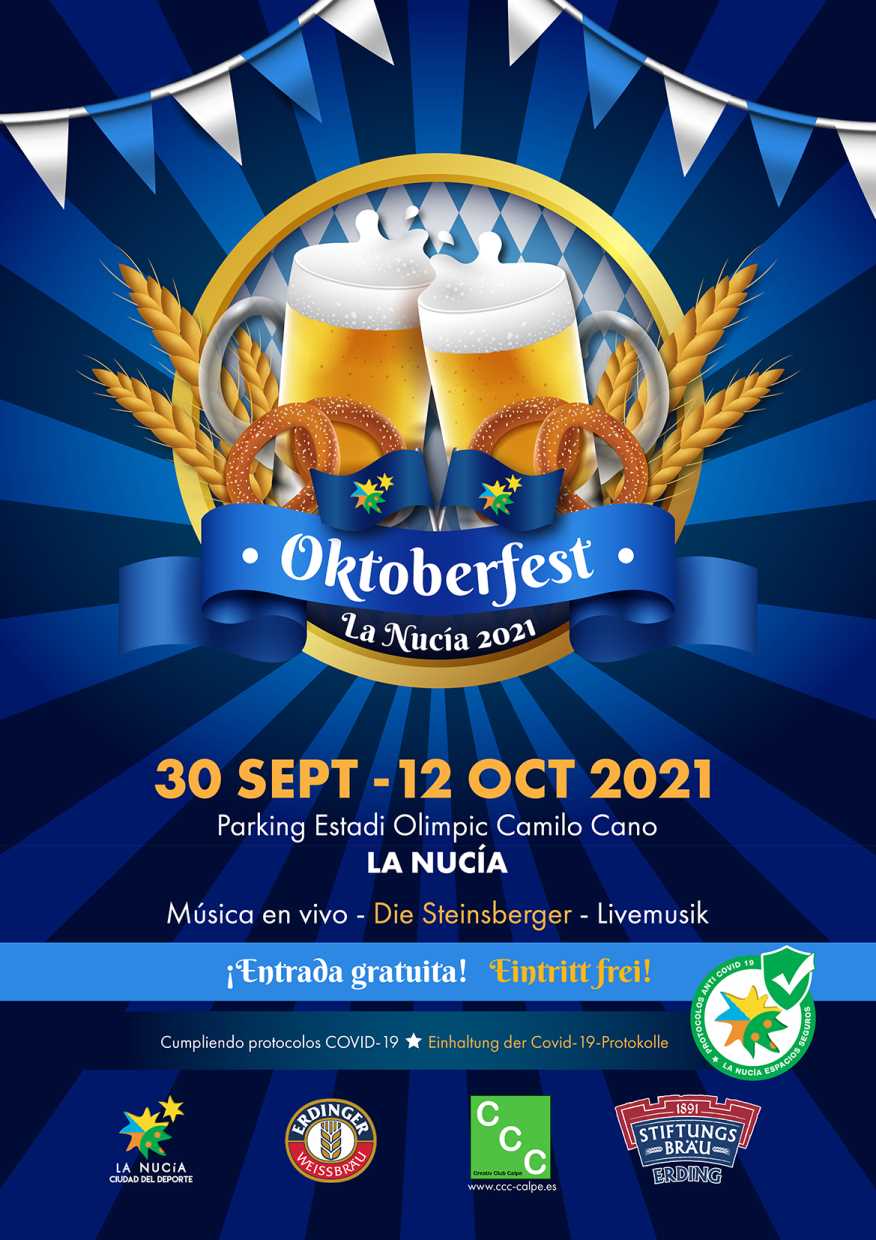 Tras su cancelación en 2020 por la COVID, la Asociación Creativ Club Calpe ha informado que la “Oktoberfest” se celebrará en 2021 en La Nucía. Esta “Fiesta de la Cerveza” se desarrollará del 30 de septiembre al 12 de octubre en el parking del Estadi Olímpic Camilo Cano con entrada gratuita, donde se cumplirán los protocolos anti COVID, con estricto control del aforo.