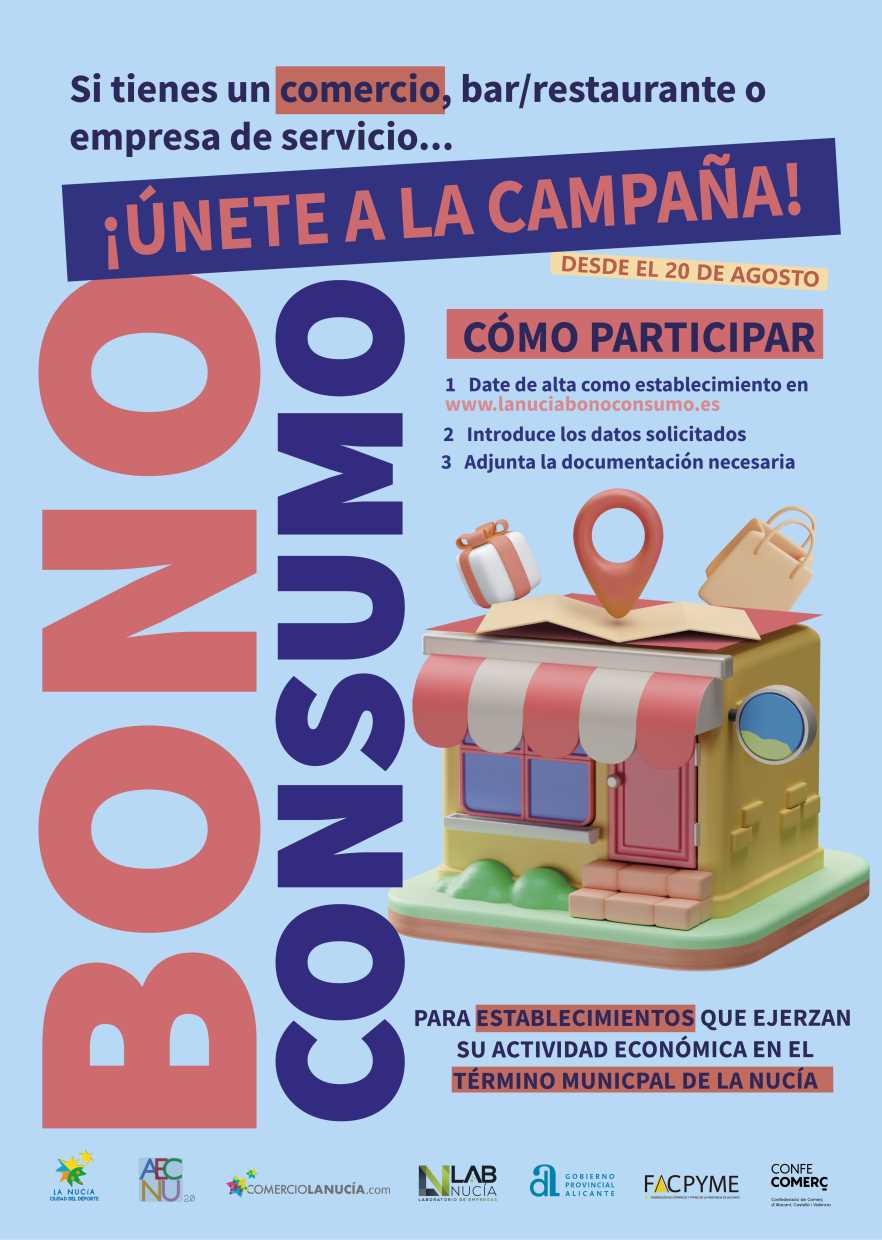 La “Campaña de Bonos Consumos” está organizada por AECNU, FACPYME y Ayuntamiento de La Nucía con la subvención de la Diputación de Alicante. Su objetivo es dinamizar la actividad económica del municipio e incentivar las compras en el comercio local.