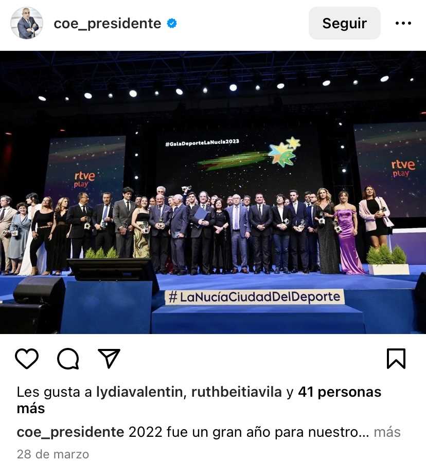 o políticos, federaciones instituciones como el presidente de la Diputación Carlos Mazón (@CarlosMazon40), el presidente del COE Alejandro Blanco (@COE_Presidente), @coe, @rfef, @atletismoRFEA ..etc