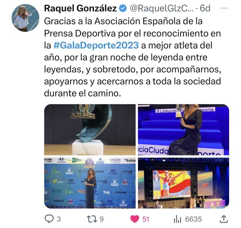 Estos datos son sólo de tres redes sociales (TikTok, Twitter e Instagram) que permiten reconocer la repercusión. Pero la repercusión de la XLII Gala Nacional del Deporte habrá sido mucho mayor, si pudiéramos contabilizar los impactos generados en Facebook y otras redes sociales.