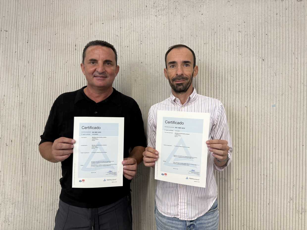 La Escuela de Oficios de La Nucía ha obtenido dos certificados ISO en 2025: uno por su formación profesional (ISO 9001:2015 AENOR) para el empleo y ISO 14001 en gestión medioambiental por su correcto tratamiento de los residuos para reducir el impacto ambiental. Ambos certificados los ha obtenido tras pasar las pertinentes auditorías externas y demuestran la calidad y excelencia de la formación y gestión de esta Escuela de Oficios del Ayuntamiento de La Nucía. Estos certificados puntúan a la hora de obtener cursos de formación y talleres de empleo.